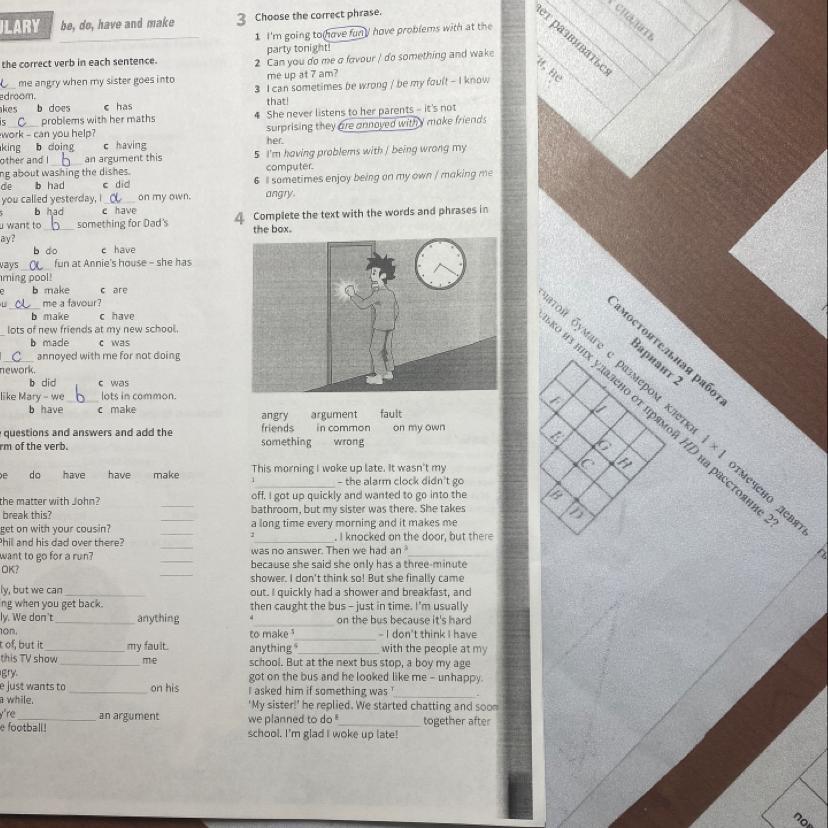 помогите , пожалуйста 3 и 4 упражнение. В 3 проверьте пожалуйста то что я обвела, правильно или нет.