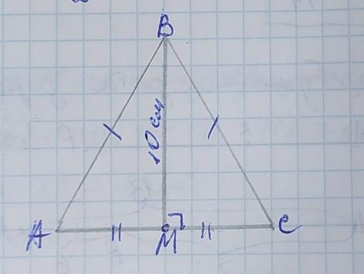 В равнобедренном треугольнике биссектриса является ещё высотой и медианой, поэтому она делит сторону АС пополам, и так как ∆АВС равнобедренный, то периметры ∆АВМ и ∆СВМ равны. Сумма сторон