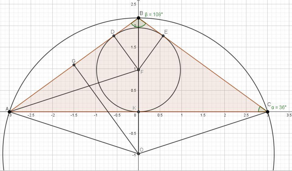 Точки F i 0-центри вписаного і описаного кіл рівнобедреного трикутника АВС відповідно. Вони розташовані на однаковій відстані від його основи АС. Знайдіть кути трикутника ABC.