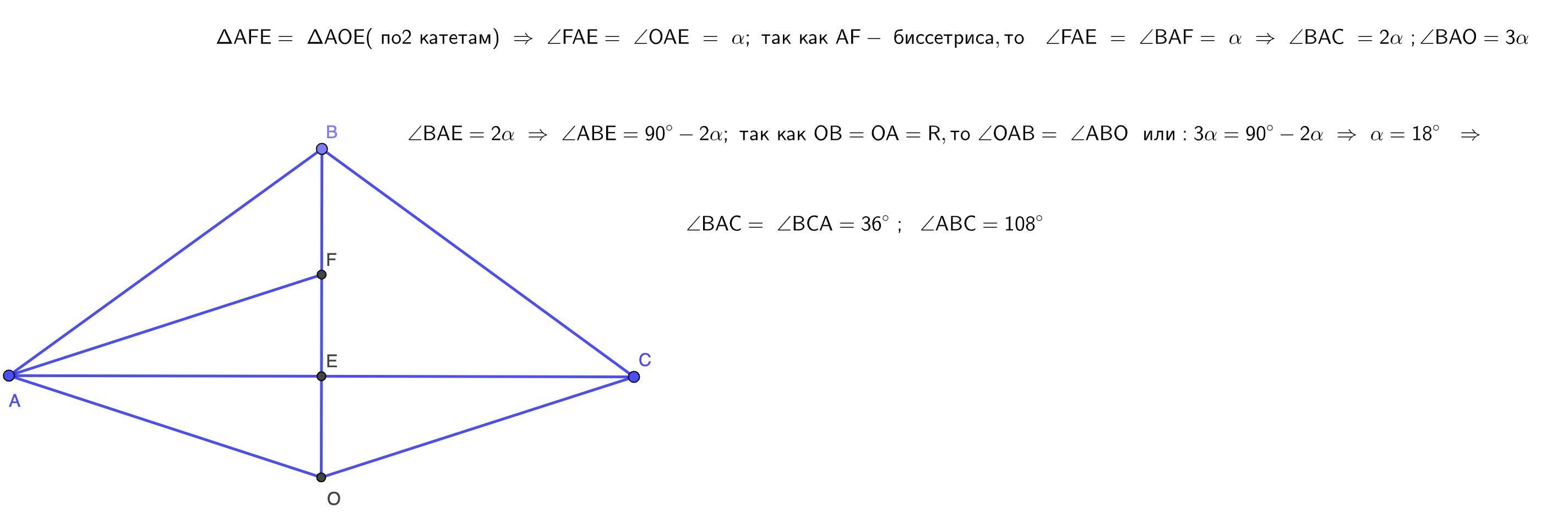Проведём радиус ОА, биссектрису AF и перпендикуляр ОG к середине АВ.