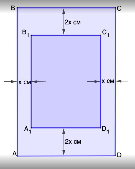 Пусть ABCD - внешний прямоугольник рамки, а A₁B₁C₁D₁ - внутренний прямоугольник рамки.
