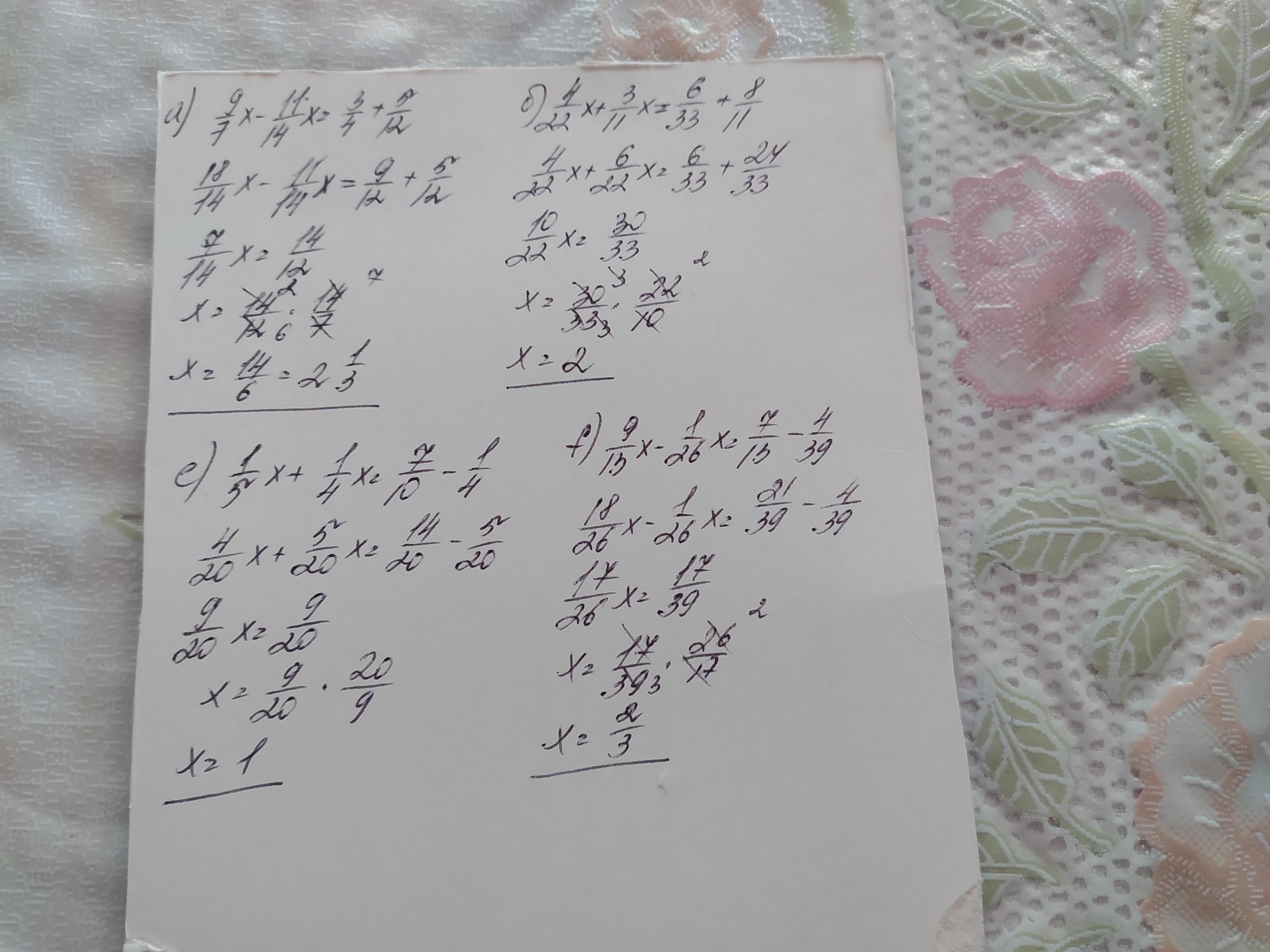 5 1 9 X 7 11 3 .xt 14 e) 1 4 +5% - = 1 -X 4 + 12 4 10 8 6 4. ·x χ 22 3 -X χ 11 f) 9 4 ext 13 39 = 1 7 xt 26 13 11 33