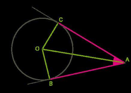 Трикутники OBA та OCA — прямокутні, оскільки дотичні перпендикулярні до радіусів кола у точках B та C. Сторона OA — спільна. Катети OB та OC рівні як радіуси одного й того самого кола. Трикутники рівні за гіпотенузою та катетом, звідси рівні й катети AB та AC, а також кути BAO і CAO, тобто OA ділить кут навпіл.