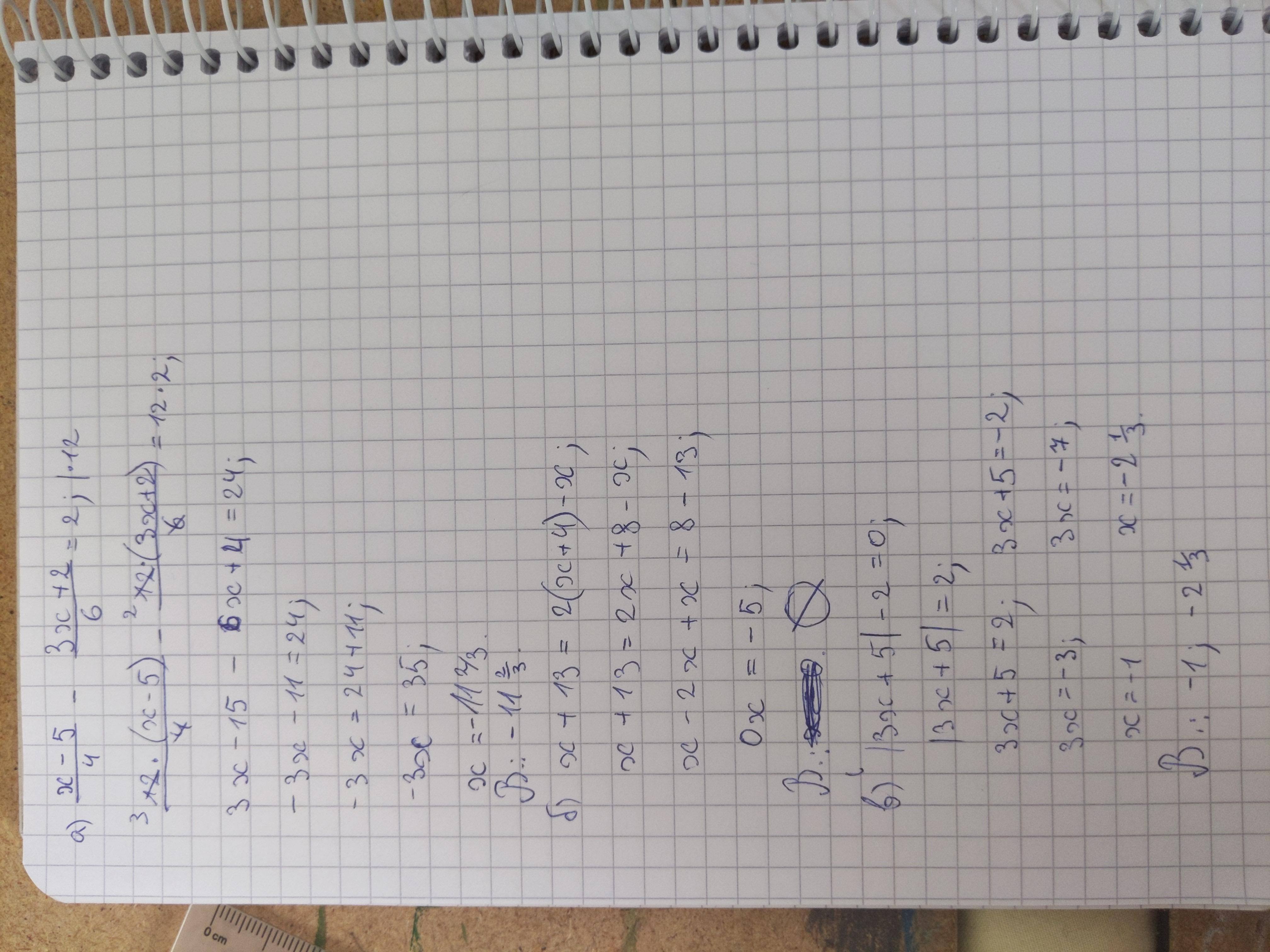 Відповідь: а) -14 ⅓ б) пуста множина( нет ответов) в) -1; -2⅓
