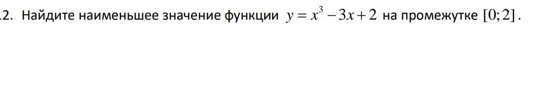 y ' = 0 ; 3( x - 1 )( x + 1 ) = 0 ; x₁ = 1 ; x₂ = - 1 ∉[ 0 ; 2 ] .