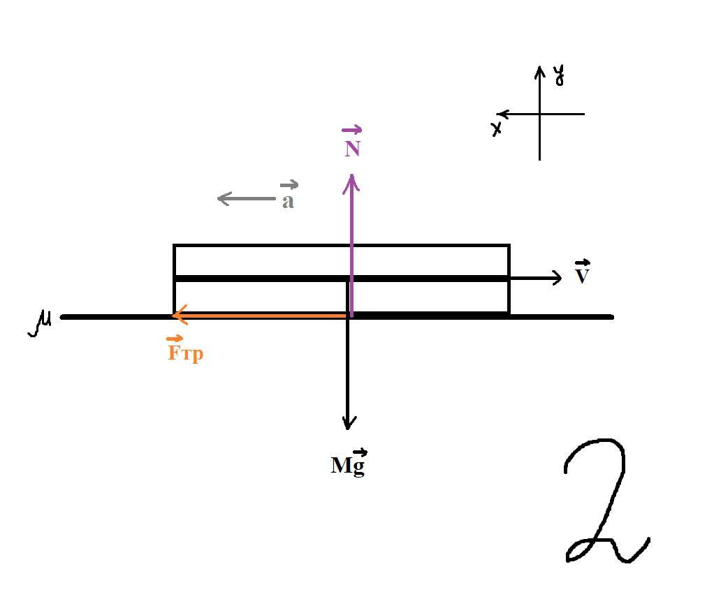 См. рисунок №2. Теперь будем рассматривать доски как единое тело массой М, на которое действует сила трения Fтр.