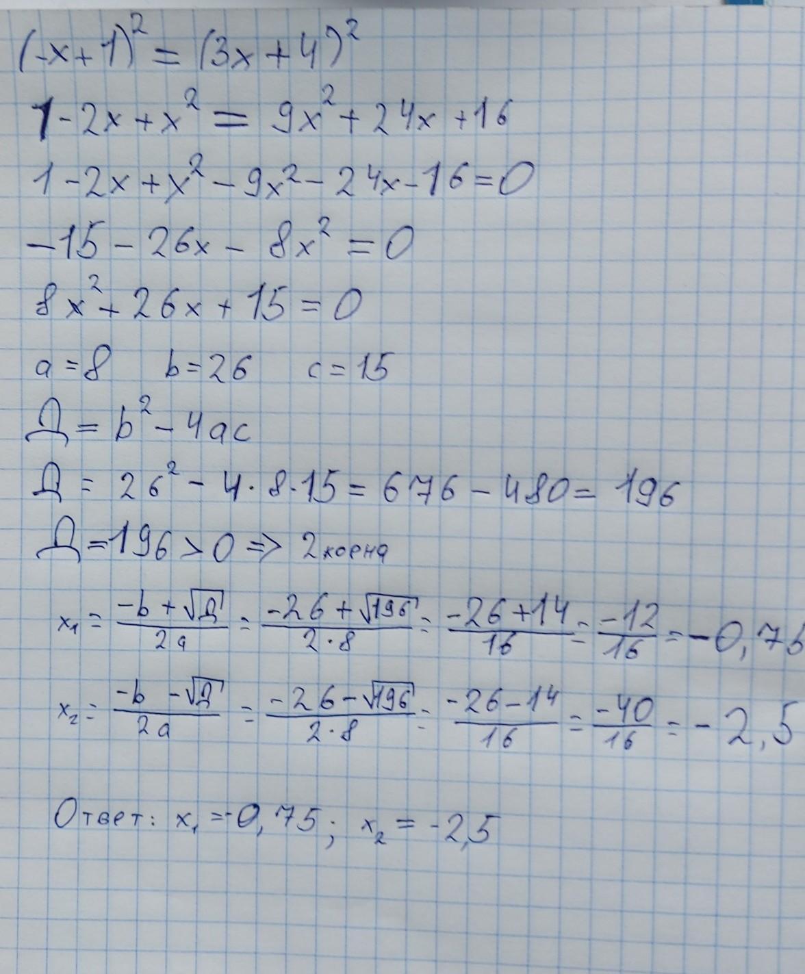 -x+1 = 3x+4 или -x+1 = - (3x+4)