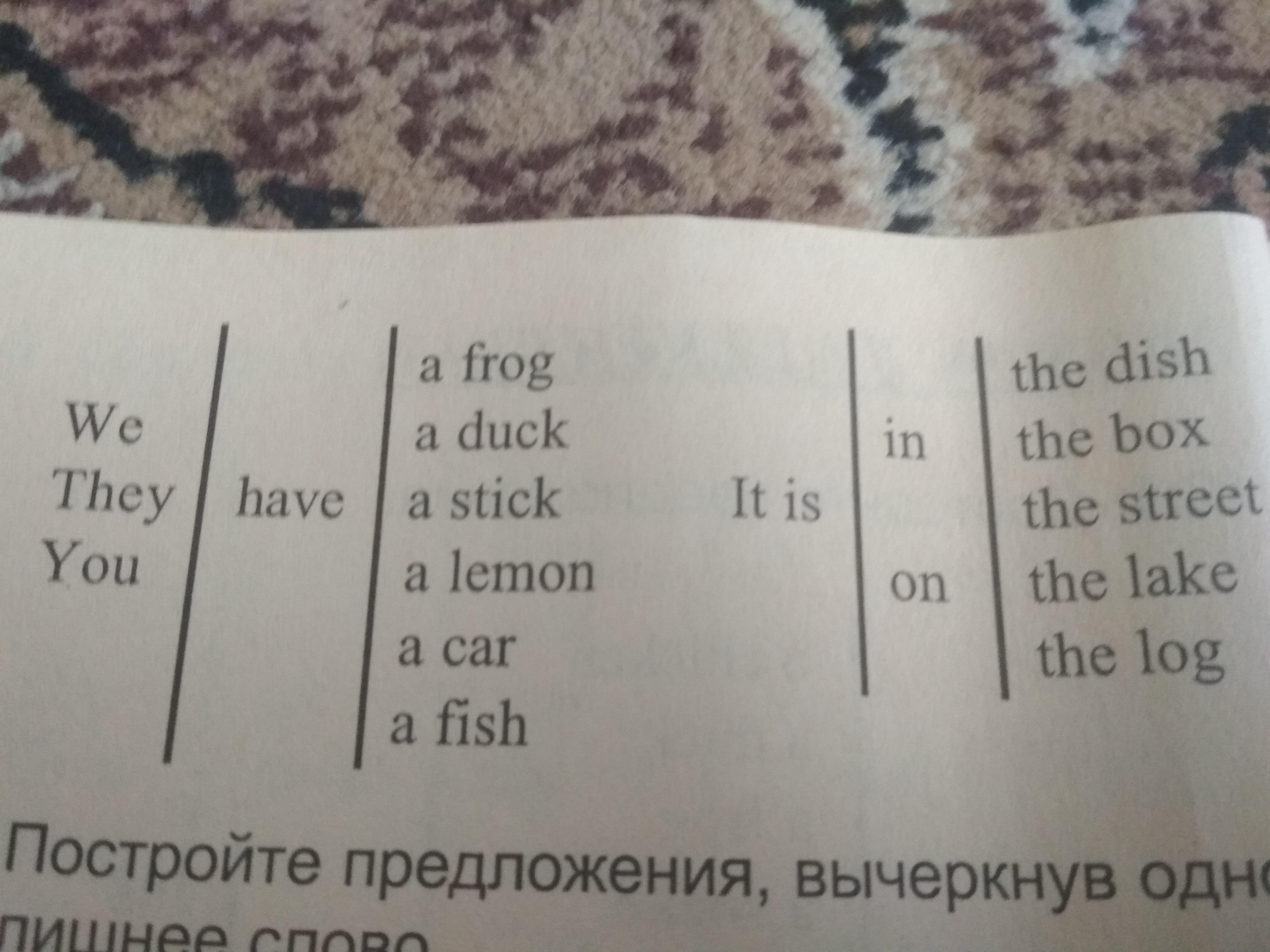 You have a frog. It is on the log.-У тебя есть лягушка. Она на бревне.