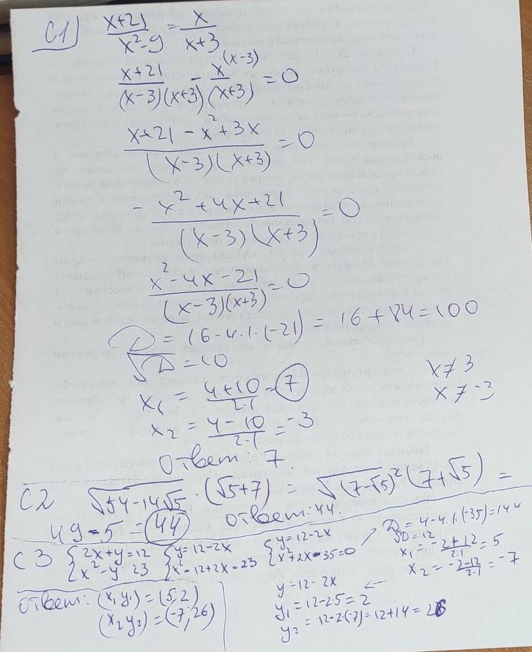 Ответ:С1) x = 7C2) 44Объяснение:Решение в преклепленном к решению фото, C3 решить не могу,устал