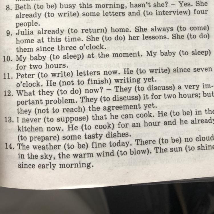 8. Beth has been busy this morning, hasn't she? - Yes. She has already written some letters and interviewed four people.