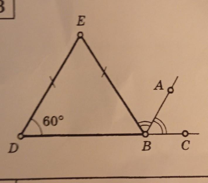 Та как треугольник равнобедренный, то угол DBE = 60. DBC - развернутый угол, равный 180, значит угол EBC = 180 - 60 = 120.