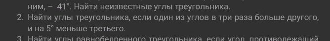 Согласно условию задачи, угол средней величины включает 3 угла наименьшей, значит, и наибольший угол включает 3 наименьших плюс ещё 5 градусов. Так как сумма внутренних углов треугольника равна 180 градусов, 1 + 3 + 3 = 7 наименьших углов составляют 180 - 5 = 175 градусов, и наименьший угол равен 175:7 = 25 градусов. Тогда углы треугольника равны 25 градусов, 25*3 = 75 градусов и 75+5 = 80 градусов.