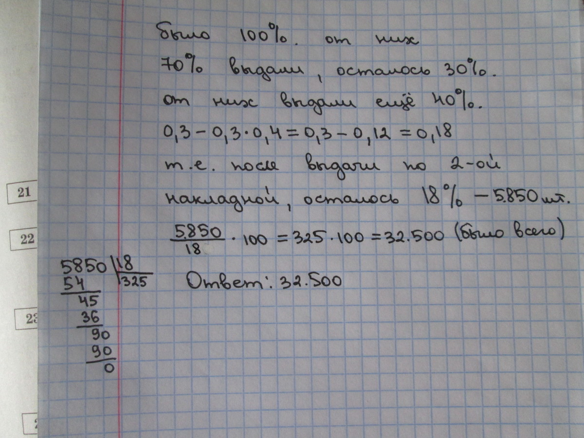 Не туда посмотрел, старый уже, зрение не ахти, ну тогда 50х0,3=15.......... 50-15=35........35х0,4=14,......15+14=29...50-29=21 осталось