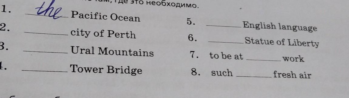 Ответ:3) the, 4) the, 6) the, 7) the,