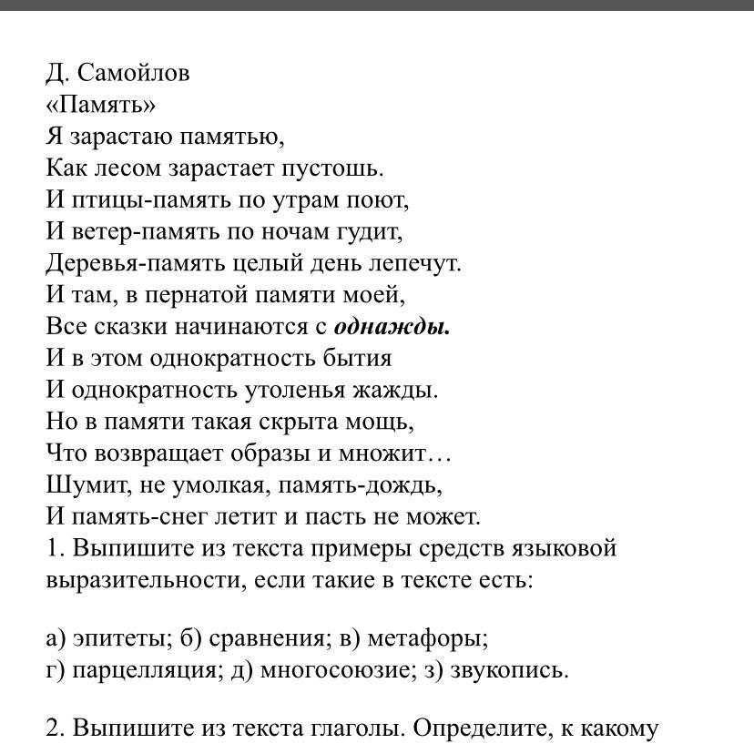 Многосоюзие: И птицы-память по утрам поют, // И ветер-память по ночам гудит... И в этом однократность бытия, // И однократность утоленья жажды.