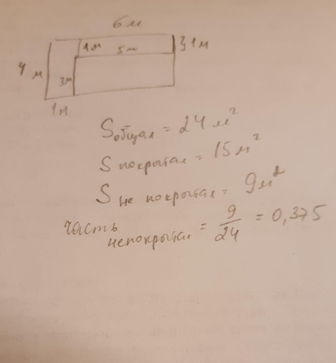 полковник длиной 6 м и шириной 4 м покрыли балластом длиной 5 м ширина 3 м Какая часть пола осталось незакрытый