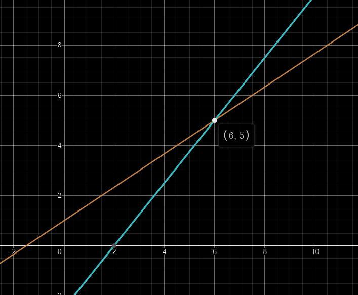 Построение см. ниже. Координаты точки пересечения соответствуют решению системы, абсцисса - это икс, ордината - это игрек. Следовательно, решение системы: .