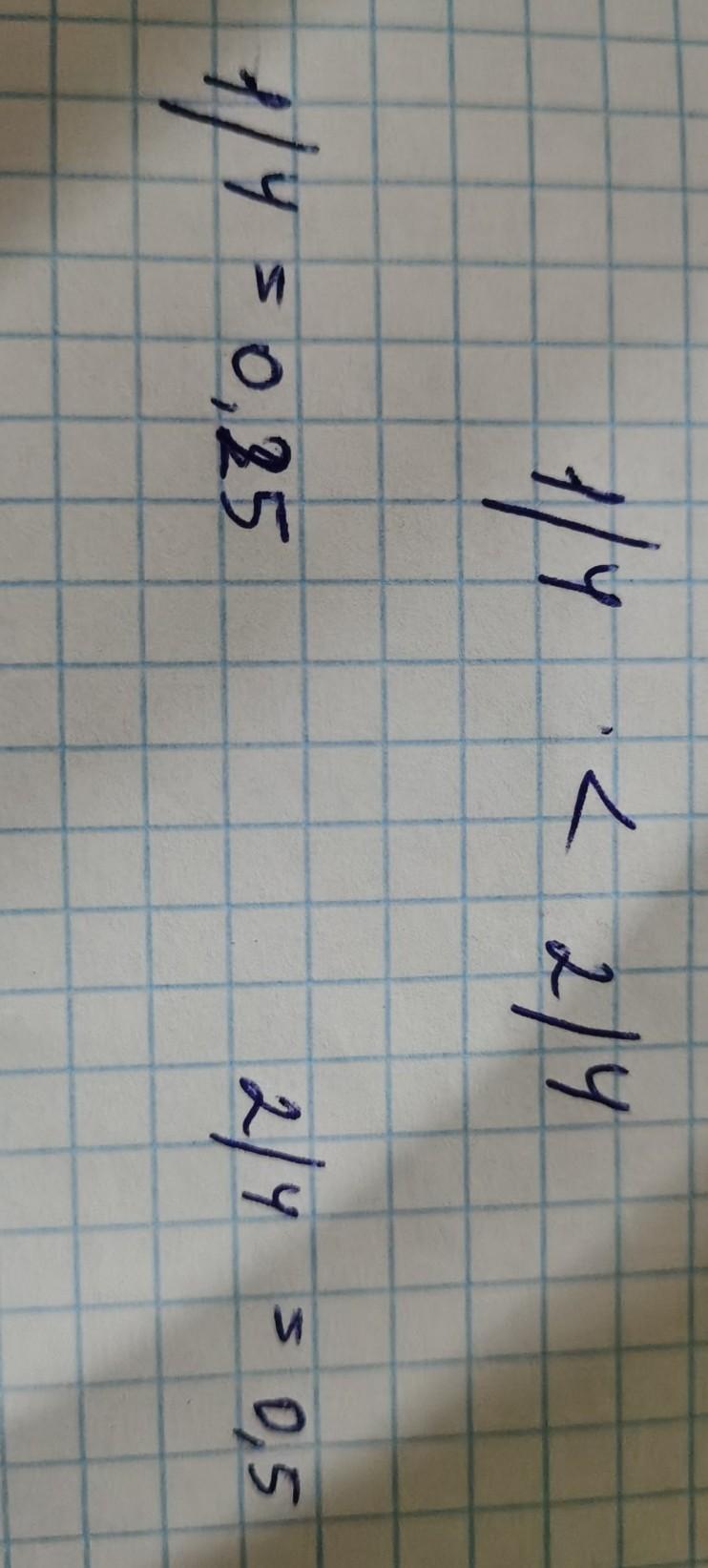 потому что 1/ 4 это 1 кусок розделен на 4 части а 2/4 2 куска на 4 части соответственно получается больше