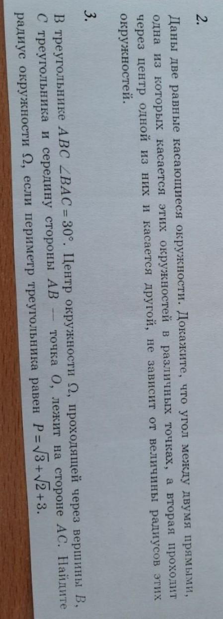 Окружности касаются внешним образом, точка касания лежит на линии центров, расстояние между центрами равно двум радиусам. Радиус, поведенный в точку касания, перпендикулярен касательной и образует прямоугольный треугольник, в котором линия центров - гипотенуза. Катет равен половине гипотенузы, значит он лежит против угла 30.