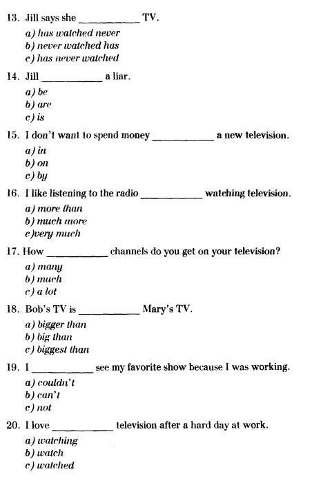 13. Jill says she has never watched TV