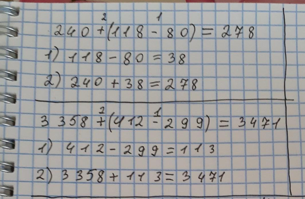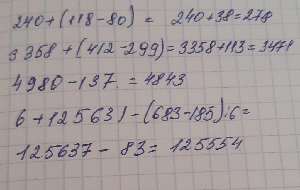 6 Найди значения выражений, записывая решение по действиям. 240 + (118 - 80). 3 358 +(412 - 299). 4 980 - 137.6 + 125 631 - (683 - 185): 6