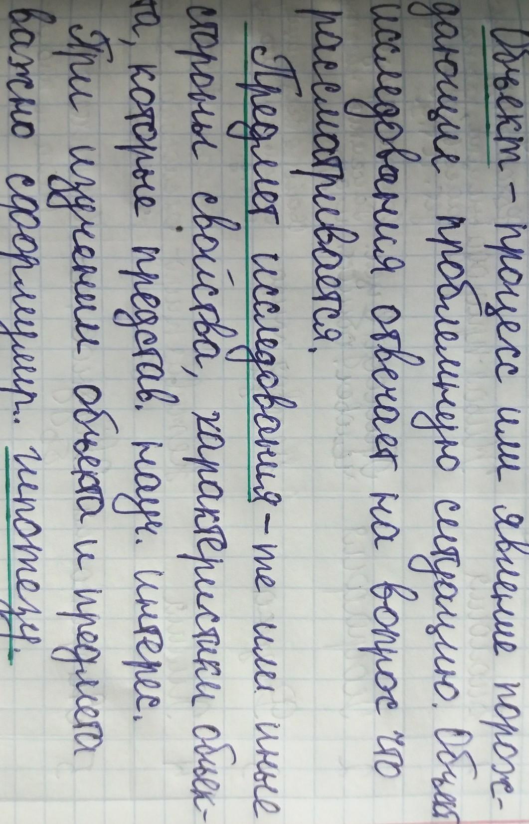 1,Объект — это процесс или явление, порождающее проблемную ситуацию и взятое исследователем для изучения. Предмет — это то, что находится в рамках, в границах объекта. ... Предмет исследования — это тот аспект проблемы, исследуя который, мы познаем целостный объект, выделяя его главные, наиболее существенные признаки.