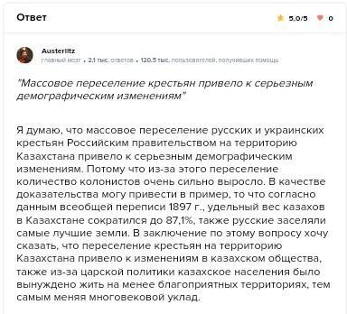 "Массовое переселение крестьян привело к серьезным демографическим изменениям "согласны ли вы с этим мнением