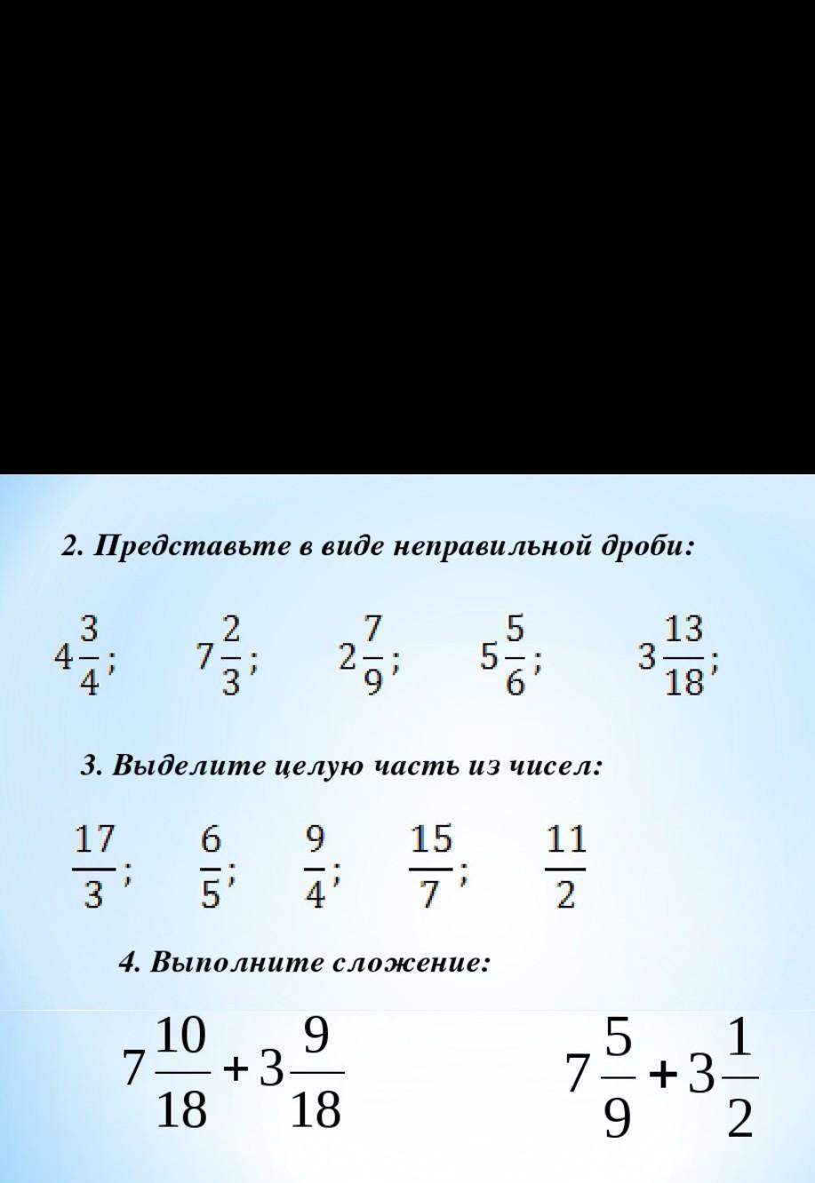 3.выделите целую часть из чисел. 17/3 ; 6/5 ; 9/4 ; 15/7 ; 11/2