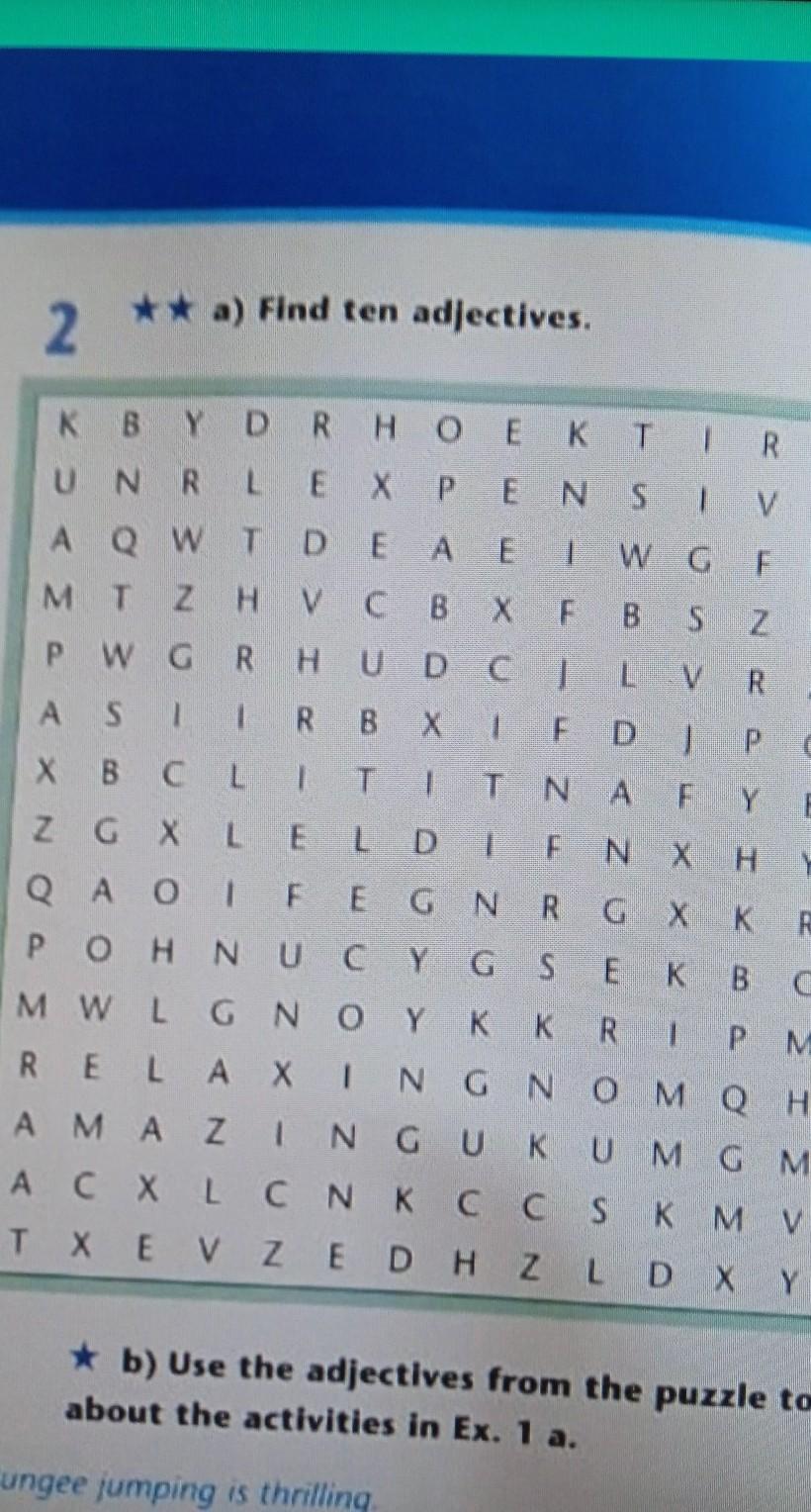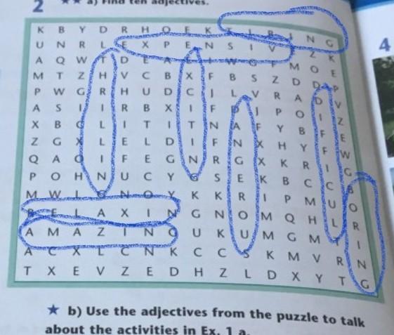 * b) Use the adjectives from the puzzle to talk about the activities in Ex. 1 a.