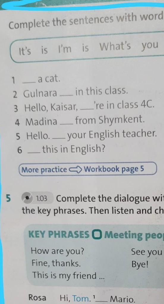 4.Complete the sentences with words in the box. __a cat. Gulnara__in this class. Hello,Kausar__'re in class 4C и.тд ПОМОГИТЕ СРОЧНООО