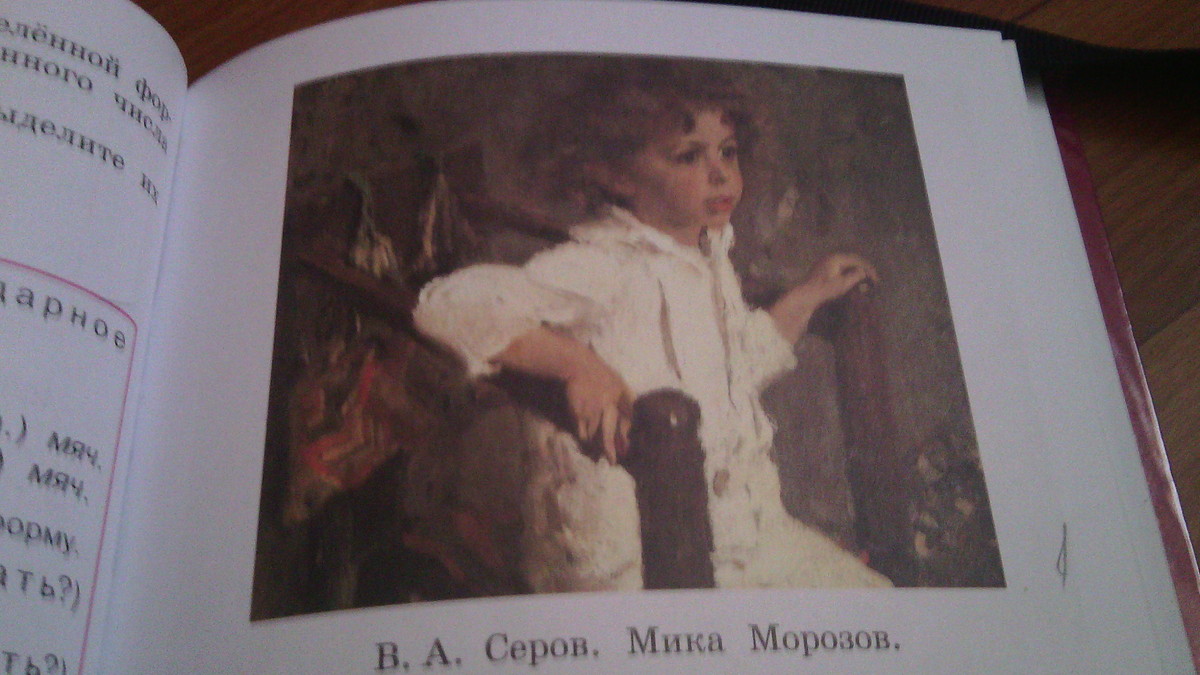 В целой галерее знаменитых портретов выделяется картина «Мика Морозов». На ней изображен маленький мальчик, сын М. Морозова, знаменитого в России мецената. На портрете Мике Морозову всего четыре года.