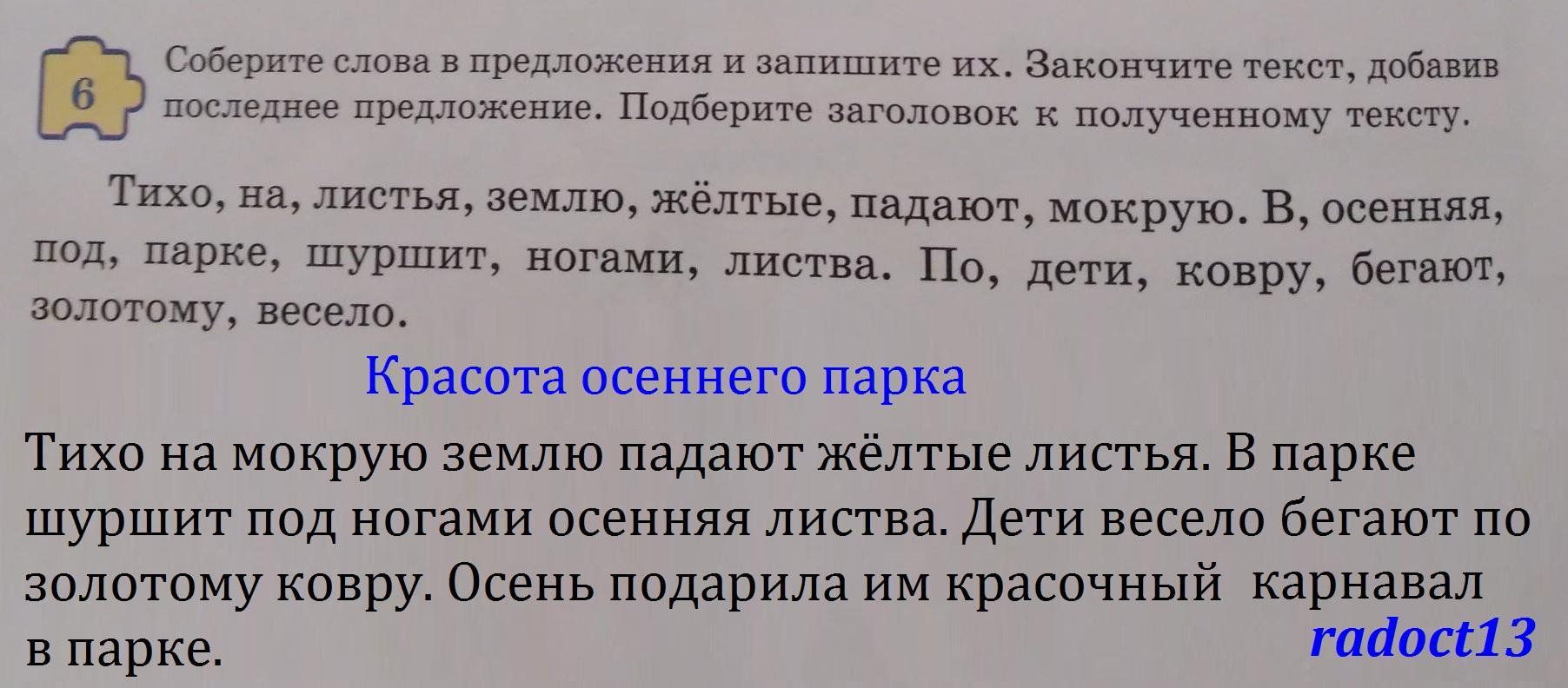 соберите слова в предложения и запишите их закончите текст добавив последниее предложение подберите заголовок