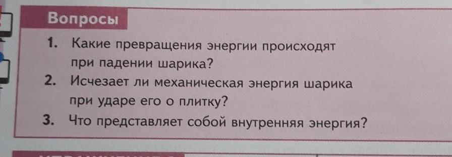 1. Кинетическая энергия превращается в тепловое движение молекул внутри шара ( при нагревании), а потенциальная энергия превращается в взаимодействие молекул между собой ( удары друг об друга, об стенки тела)