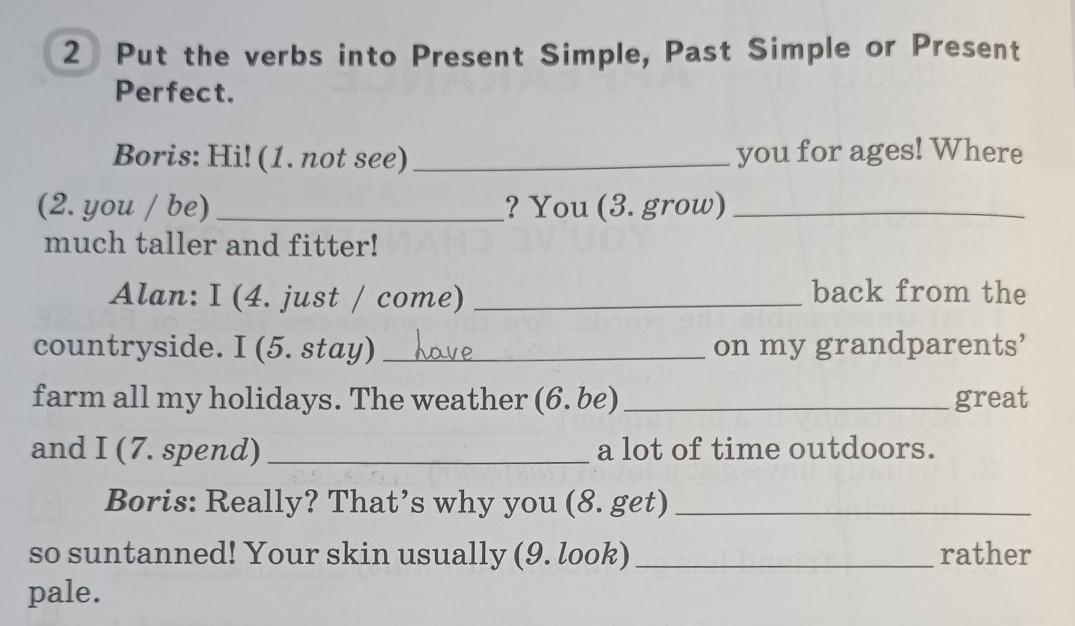 Boris: Hi! I didn't see you for ages! Where have you been? You grew much taller and fitter!