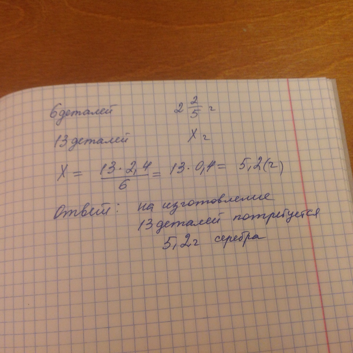 на изготовление 6 деталей требуется 2 2/5 г серебра.Сколько серебра потребуется на изготовление 13 таких деталей?