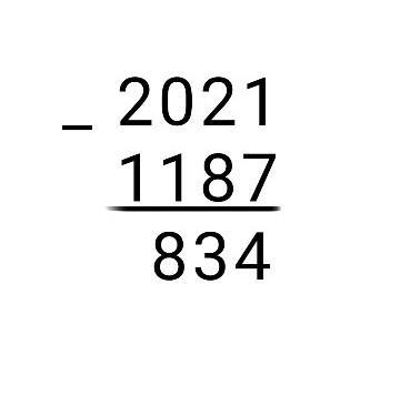 2021 - 1187 = 2000 - 1166 = 1000 - 166 = 834