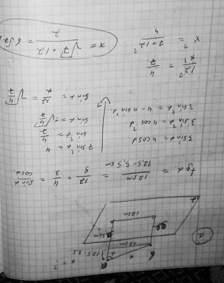Расстояние от точек А и В до плоскости альфа соотвественно равны 12,5 см и 3,5 см. Длина проекции отрезка АВ на эту плоскость равна 12 см. Найдите расстояние между точками А и В. Рассмотрите случаи, когда отрезок АВ не пересекает или пересекает альфа.