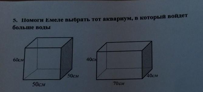 Видим, что первый аквариум вмещает больший объем воды.