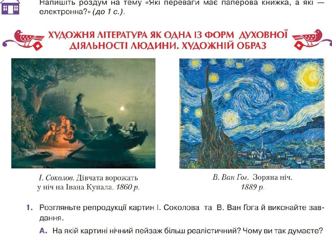 Звичайно, на картині І.Соколова "Дівчата ворожать у ніч на Івана Купала" нічний пейзаж більш реалістичний. Ця картина змальовує проведення традиційних в Україні гадань і ворожінь для дівчат. Здається, навіть фізично відчувається прохолода від туману над водою. Крізь цей туман тьмяно поблискує місяць. Ззате яскравою і гарячою зіркою горить свічечка на вінках, які дівчата спускають на воду.