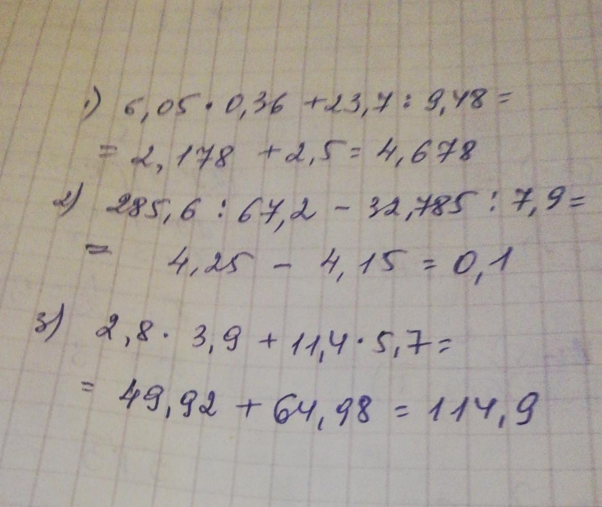 2)285,6:m-n:7,9 при m= 67,2 и n= 32,785;