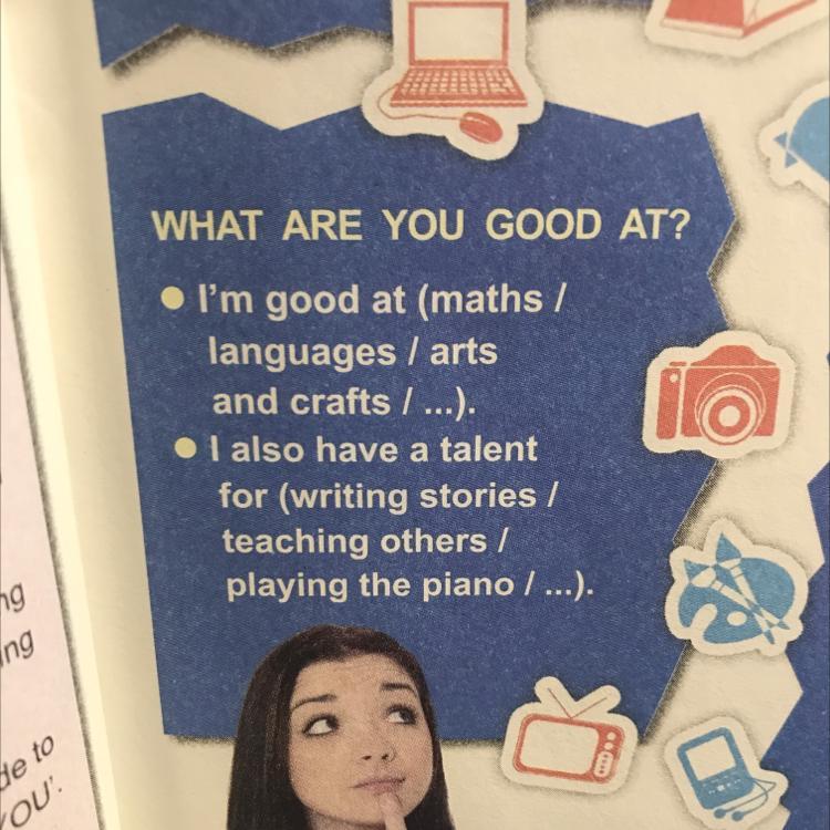 лёгкое задание, не вижу никакой сложности. спрашивают «в чем ты хорош(а) ?» снизу уже указаны примеры. дальше просто переписываешь “I’m good at..” и можешь выбрать что угодно. К примеру “I’m good at making art”, но желательно в чем вы правда хороши.