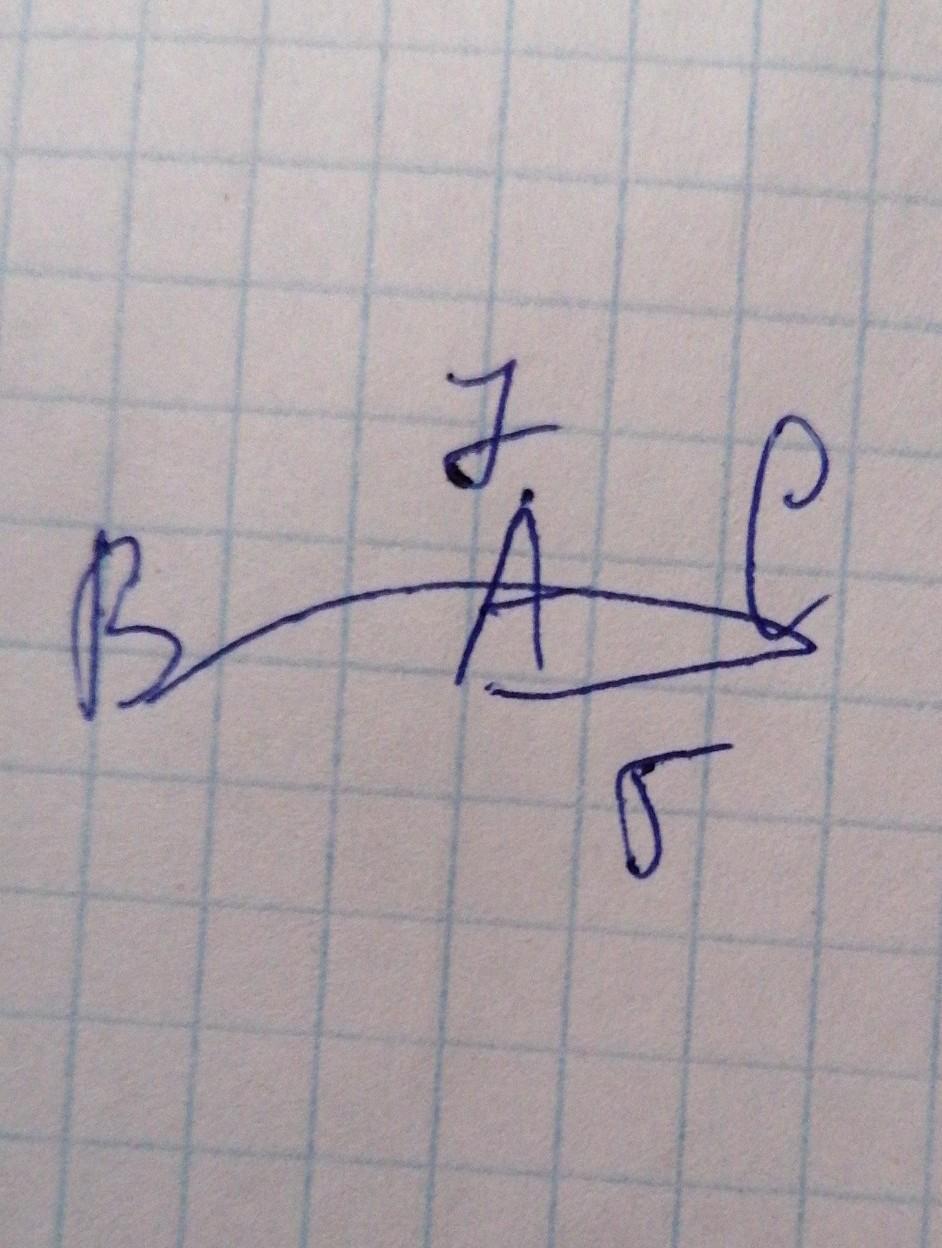 1.4. Точки А, В, С лежат на одной прямой. Принадлежит и и точка В отрезку AC, если AC = 5 см, ВС 7 см? Объясните ответ.