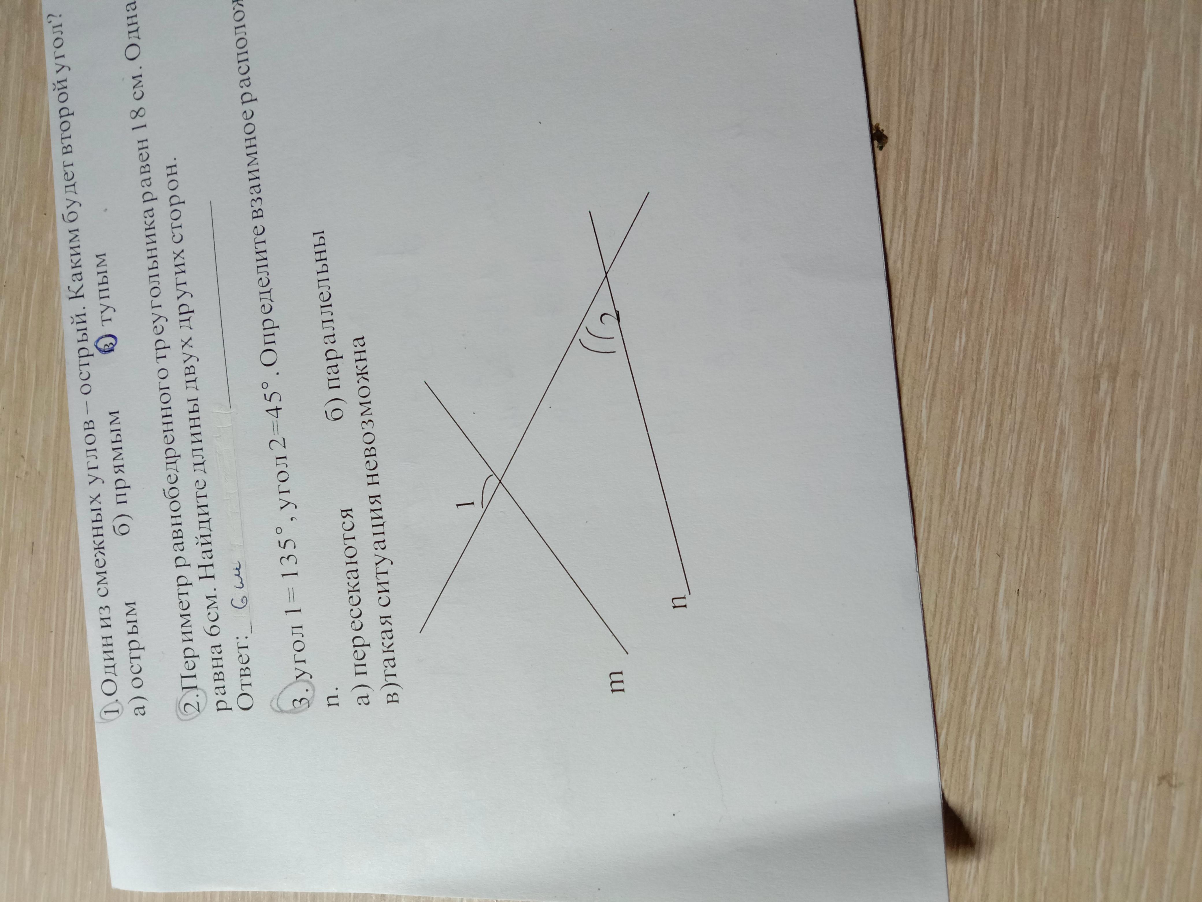 Угол 1 равен 135 угол 2 равен 45 . Определите взаимное расподожение прямых m и n