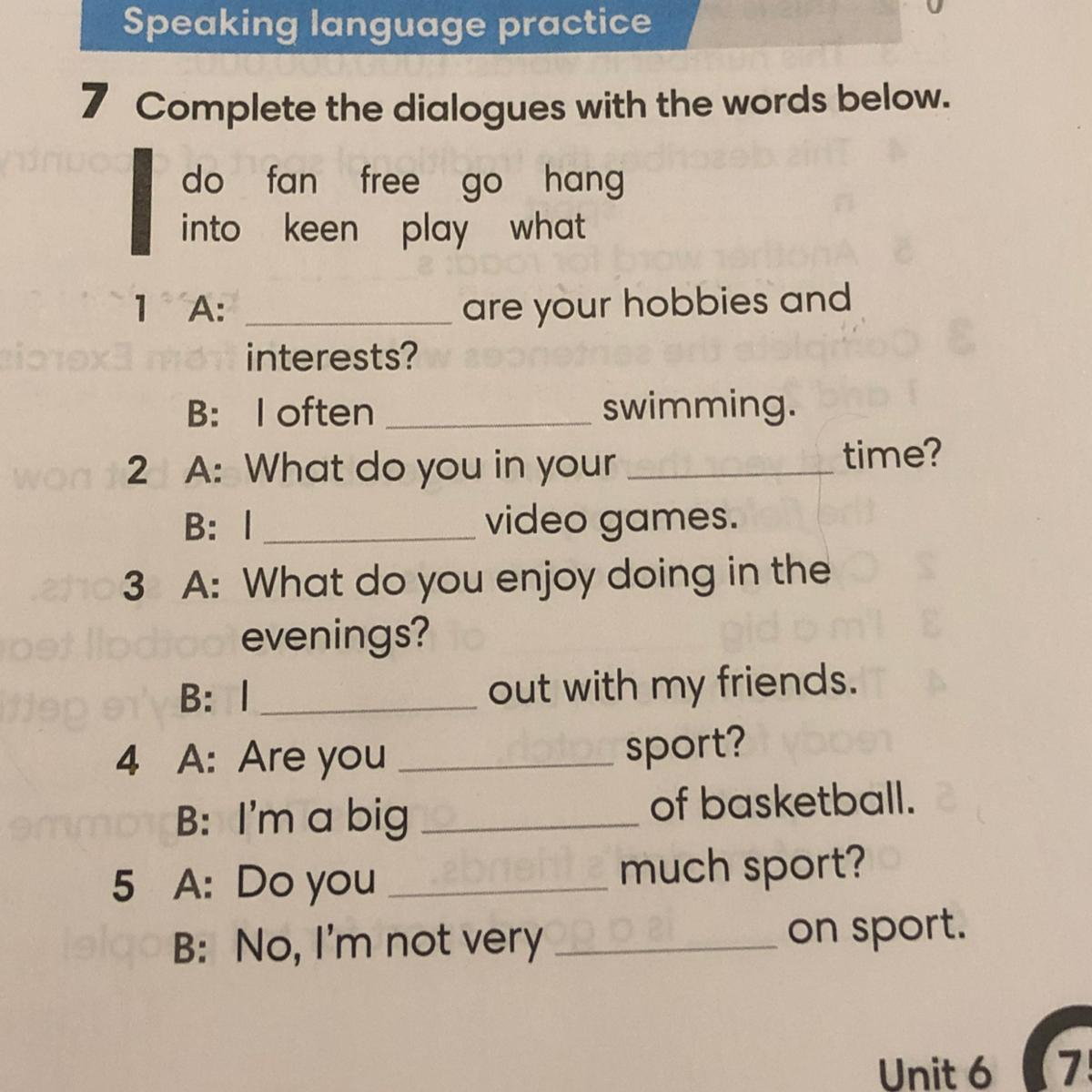 1) what 2) go 3) free 4) play 5) hang 6) keen 7) fan 8) do 9) into
