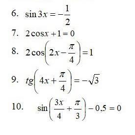 10. 3x/4 +π/3 = π/6 → 3х/4 = π/6 - π/3 → ...