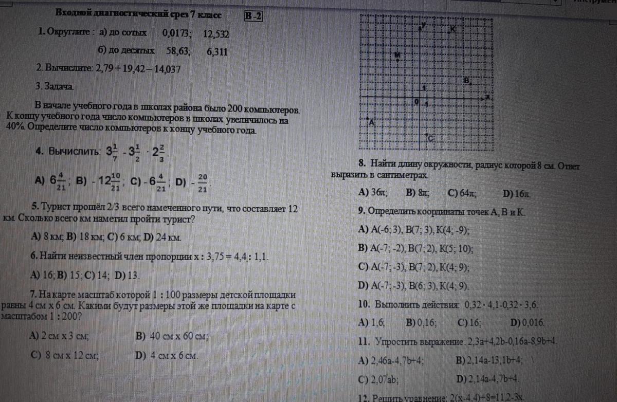 Ответ: С) А(-7; -3), В(7; 2), К(4; 9)