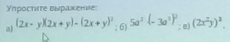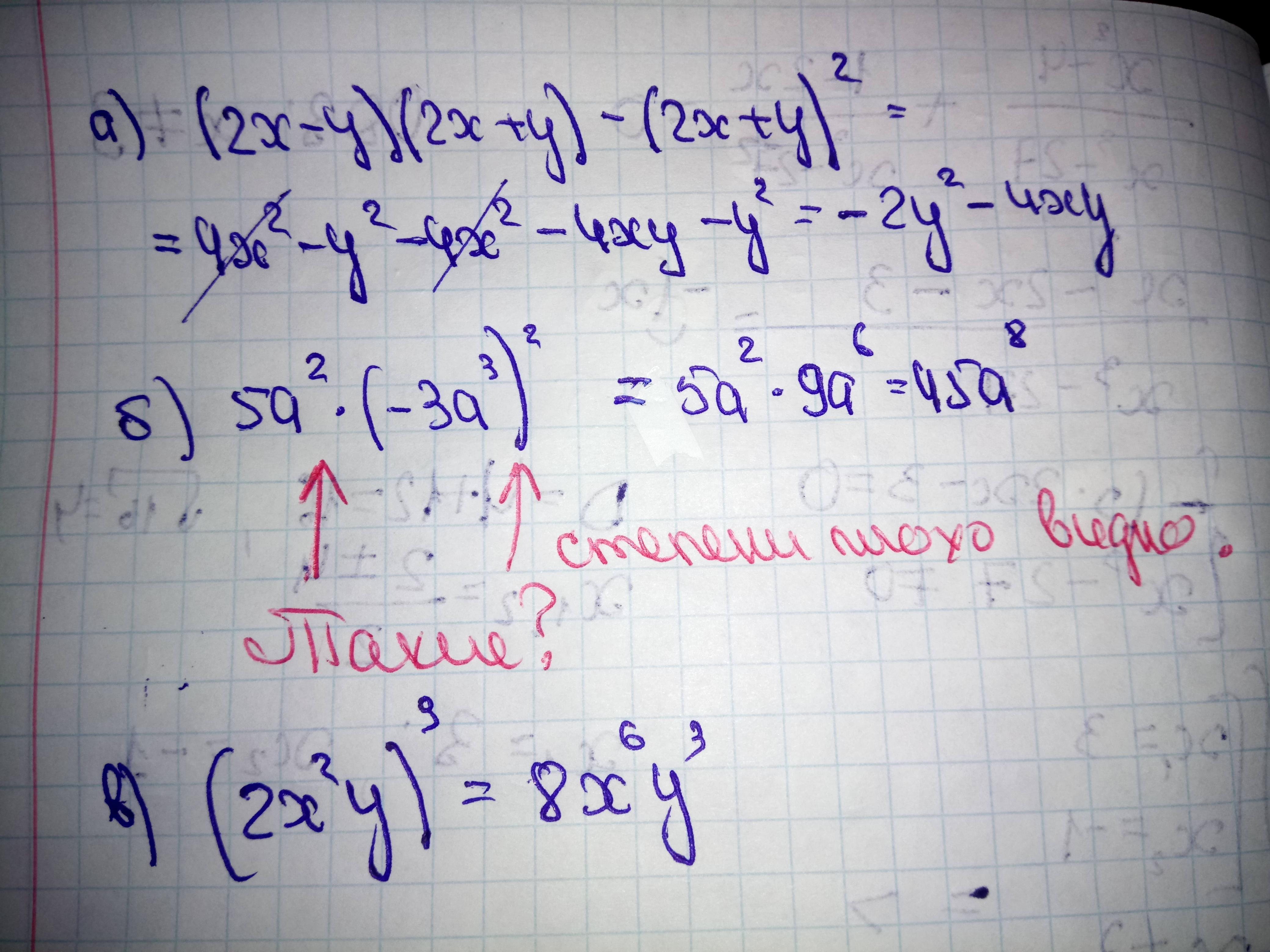 б) 5а²*(-3а³)²=5а² * 9а⁶=45а⁸. (плохо видно)
