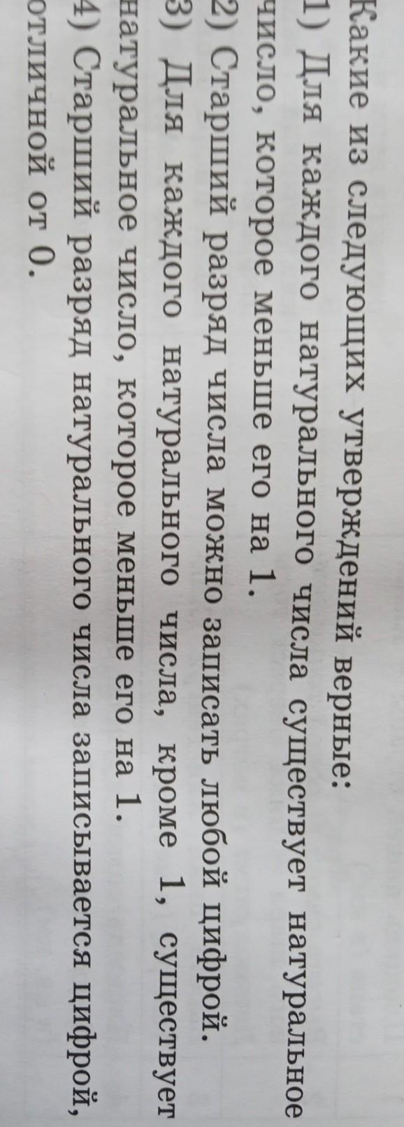 Какие из следующих утверждений верные: 1) Для каждого натурального числа существует натуральное число, которое меньше его на 1. 2) Старший разряд числа можно записать любой цифрой. 3) Для каждого натурального числа, кроме 1, существует натуральное число, которое меньше его на 1. 4) Старший разряд натурального числа записывается цифрой, отличной от 0. ПЖЖЖЖЖ 10 БАЛЛОВ