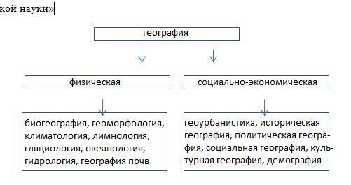 Сгруппируйте подразделы географии: биогеография, геоурбанистика, геоморфология, климатология, лимнология, гляциология, историческая география, океанология, политическая география, гидрология, социальная география, география почв, культурная география, демография по отраслям и отобразите в схеме «Отрасли географической науки»