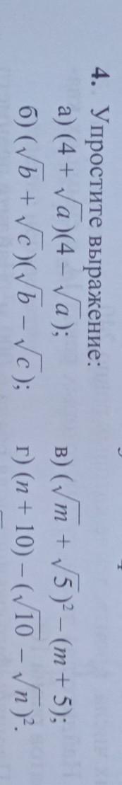 г) n + 10 - (\sqrt {10} - \sqrt n)^2=n+10-10-n+2\sqrt {10}~n = 2n\sqrt{10}n+10−(